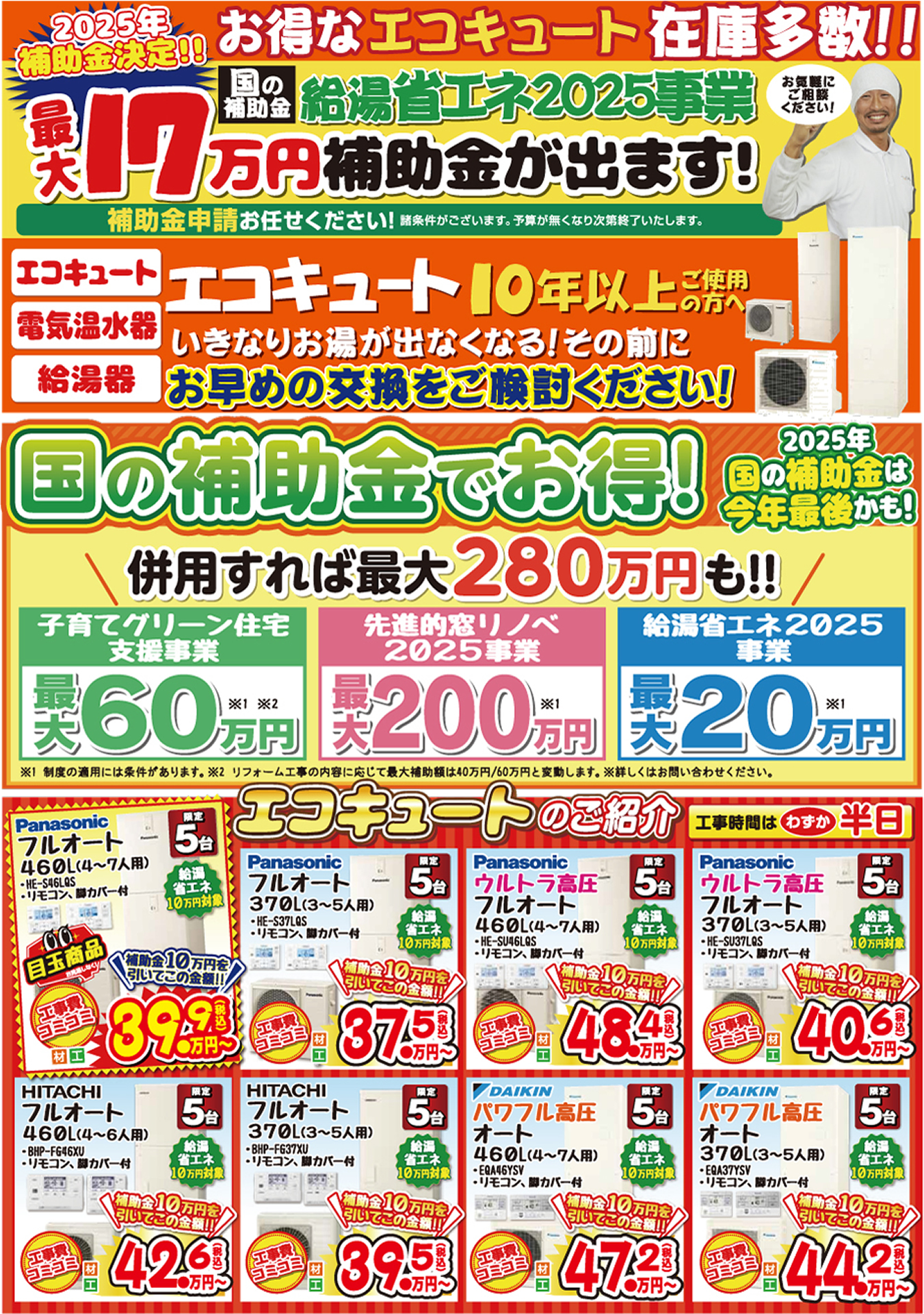 - 2025.8.24:平塚市のお客様よりエコキュート交換のお問い合わせをいただきました。