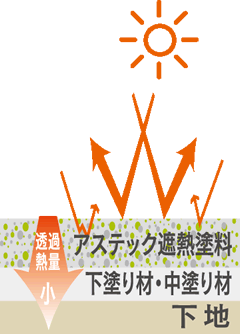 太陽光に含まれる熱赤外線を効果的に反射するので、外壁からの熱の浸入を防ぎます。都市部のビル・マンションによるヒートアイランド現象を緩和させます。