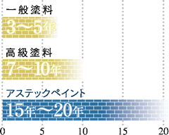 短期間に複数回塗り替えるよりも、耐久性のあるアステックペイントを施工した方が、長い目で見た場合、とても経済的です。