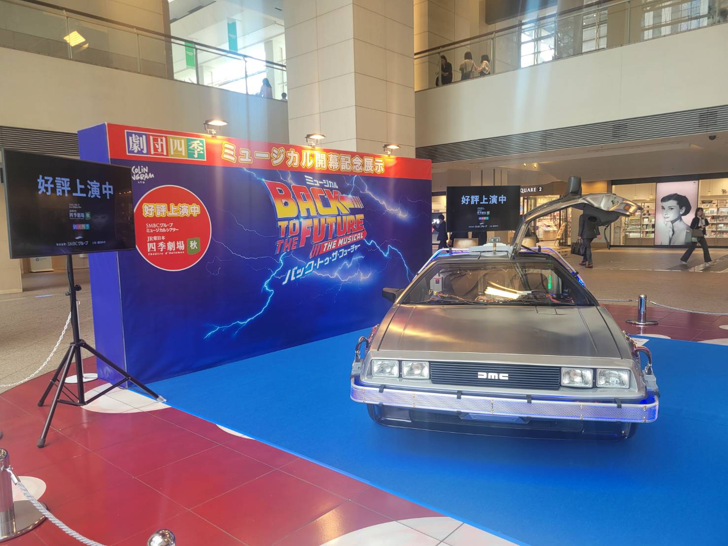 浜松町の劇場に行く前に、ちょうど桜木町のクイーンズスクエア横浜に「バックトゥザフューチャー」に出てくる車「デロリアン」が展示されているということで見に行ったあと、会場に行きました。