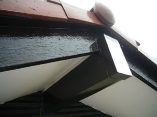 屋根 下塗り:水谷ペイント㈱水系パワーシーラーⅡ 中塗り・上塗り:水谷ペイント㈱水系カスタムシリコン 破風・鉄部 下塗り:関西ペイント㈱ザウルスEXⅡ 破風・鉄部:関西ペイント㈱セラMレタン 軒天:日本ペイント㈱ケンエースG-Ⅱ