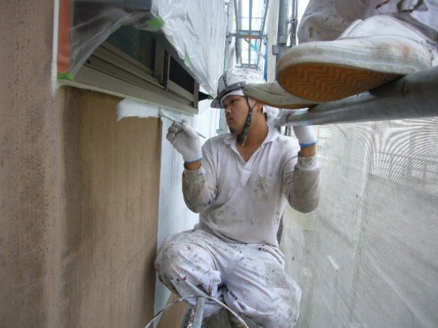 外壁下塗り前シーラー:エスケー化研㈱ 水性ミラクシーラーエコ外壁下塗り:TOTO㈱ ハイドロテクトコート外壁中塗り:塗魂ペインターズ ハイドロテクトカラーコート外壁上塗り:TOTO㈱ 光触媒ECO-HG