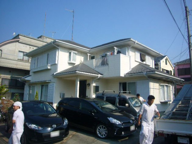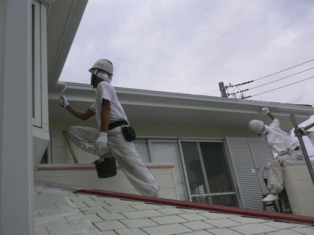 外壁 下塗り:日本ペイント㈱ パーフェクトサーフ外壁 中塗り・上塗り:日本ペイント㈱ パーフェクトトップ屋根 下塗り:日本ペイント㈱ サーモアイ シーラー屋根 中塗り・上塗り:日本ペイント㈱ サーモアイSI軒天:ロックペイント㈱EVER ROCK霧除け:関西ペイント㈱セラMレタン