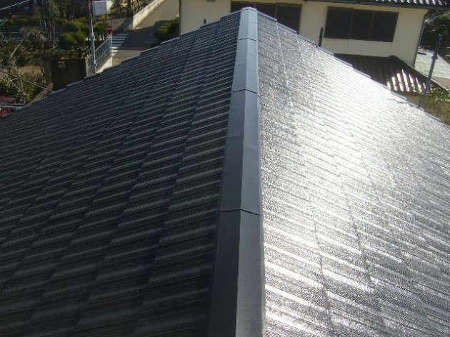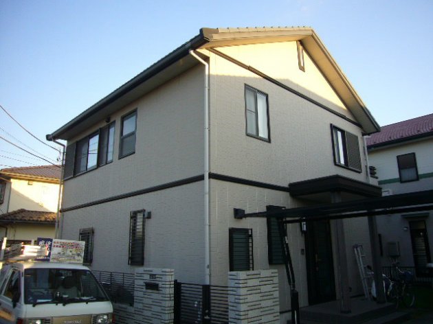 外壁 下塗り:日本ペイント㈱ パーフェクトサーフ1F外壁 中塗り:日本ペイント㈱ パーフェクトトップ2F外壁 中塗り:日本ペイント㈱パーフェクトトップ屋根 下塗り:日本特殊塗料㈱NTスリラー瓦用シーラー屋根 中塗り・上塗り:関西ペイント㈱ヤネMシリコン