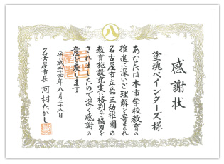 ![]() 教育施設充実に貢献 名古屋市 市長 河村たかし様から |