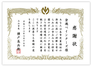 ![]() 保育環境の向上に貢献 山形県上山市 市長 横戸長兵衛 様から |